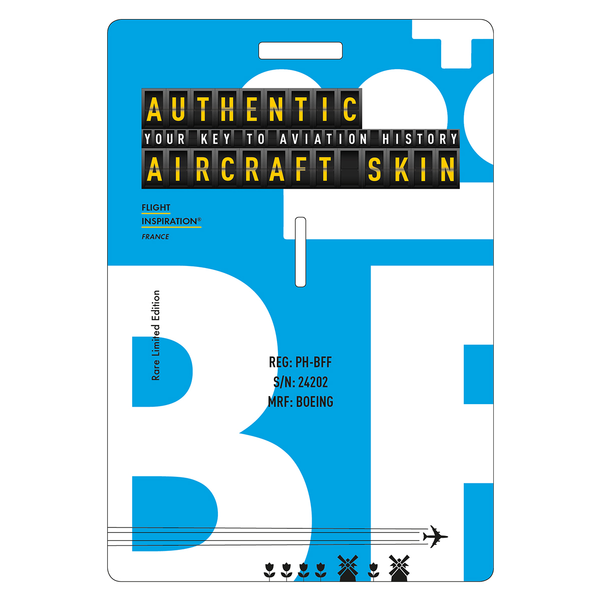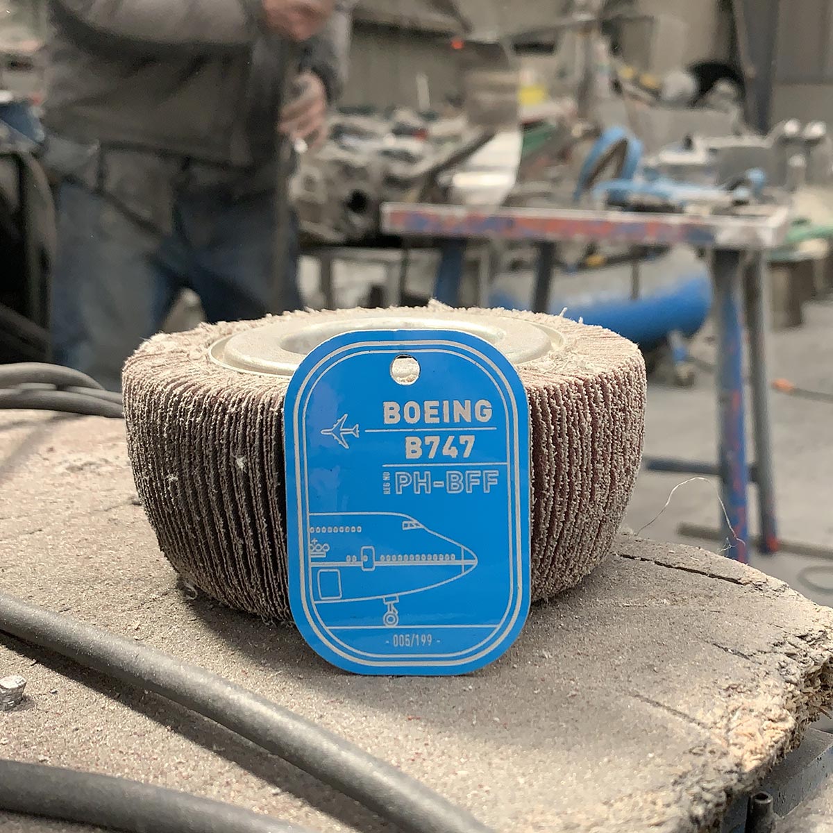 Reprenant la forme des hublots du Boeing, on a ajouté à l’authenticité en gravant aussi le contour interne.