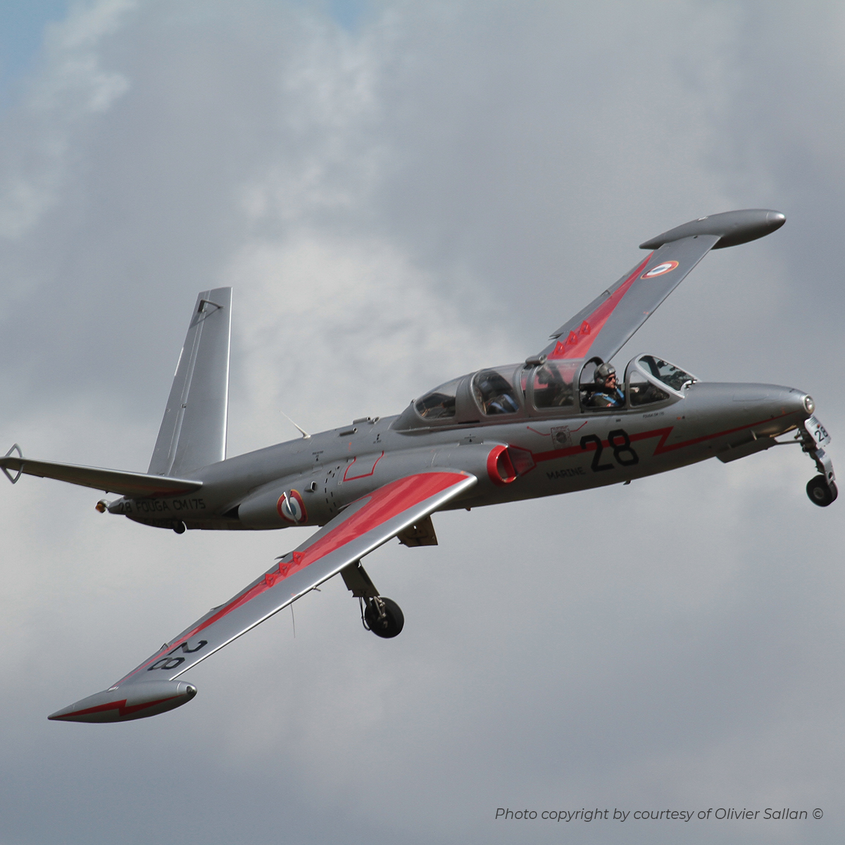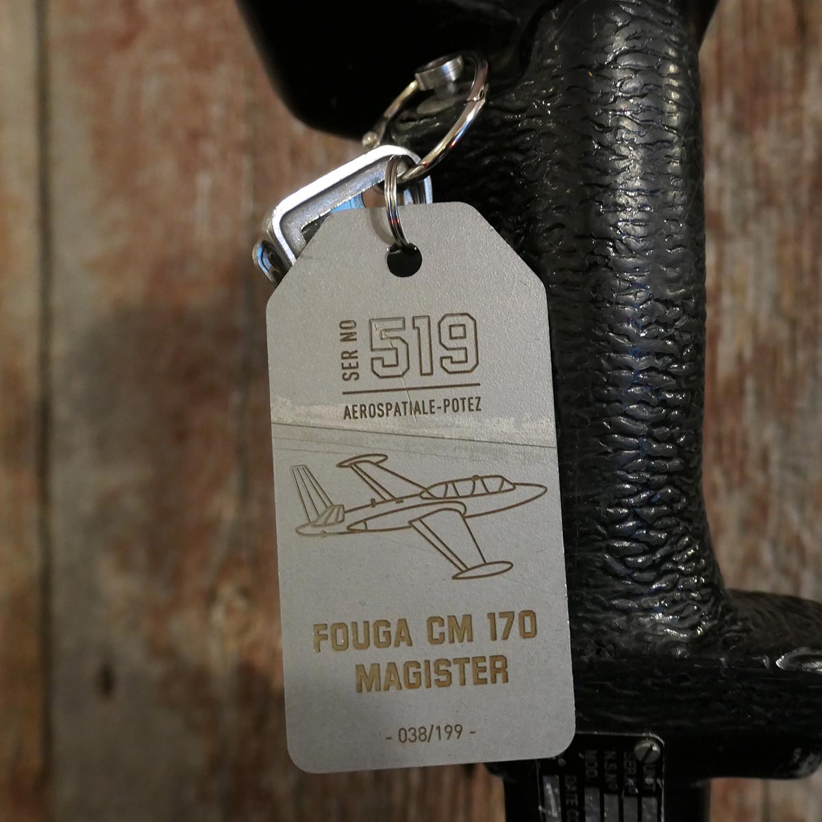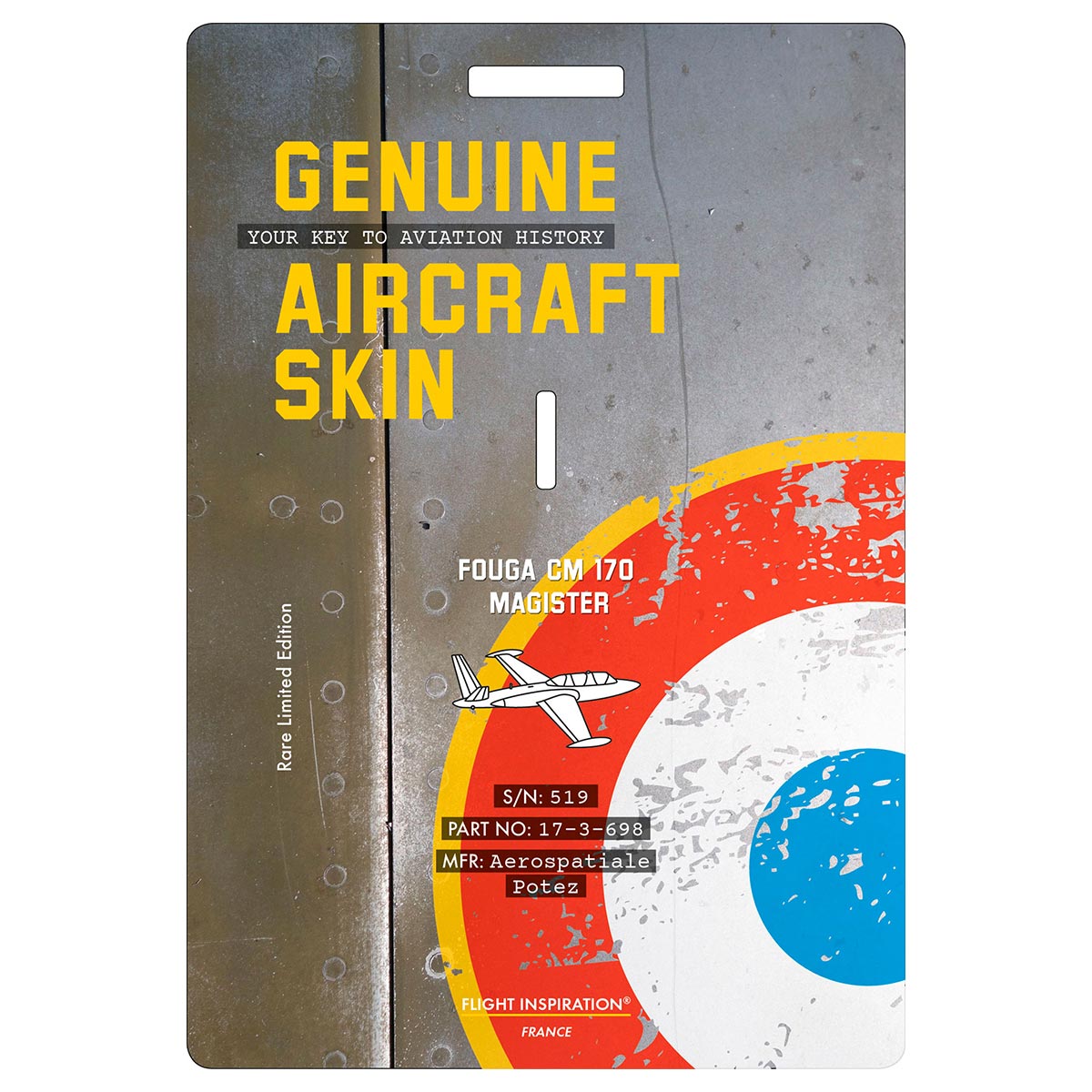 Nos Emblèmes Aéronautiques ont étaient découpés à partir de la dérive d’un Fouga CM-170 Magister, matériau qui change selon les conditions de vol et de stockage.